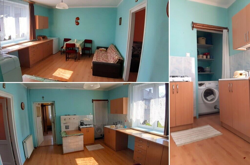 -kuchnia z jadalnią (z piecem węglowym) oraz z wnęką na pralkę i
