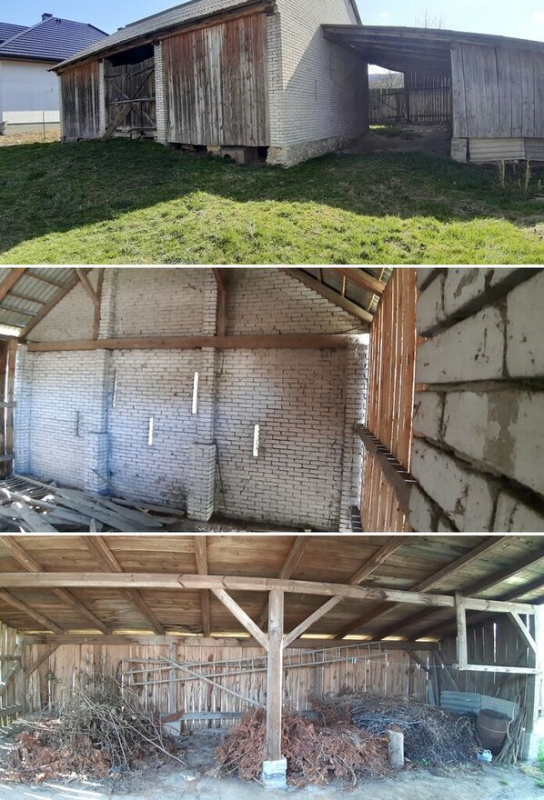 -murowana obora z 2 pomieszczeniami na dole i ogromnym, wysokim
